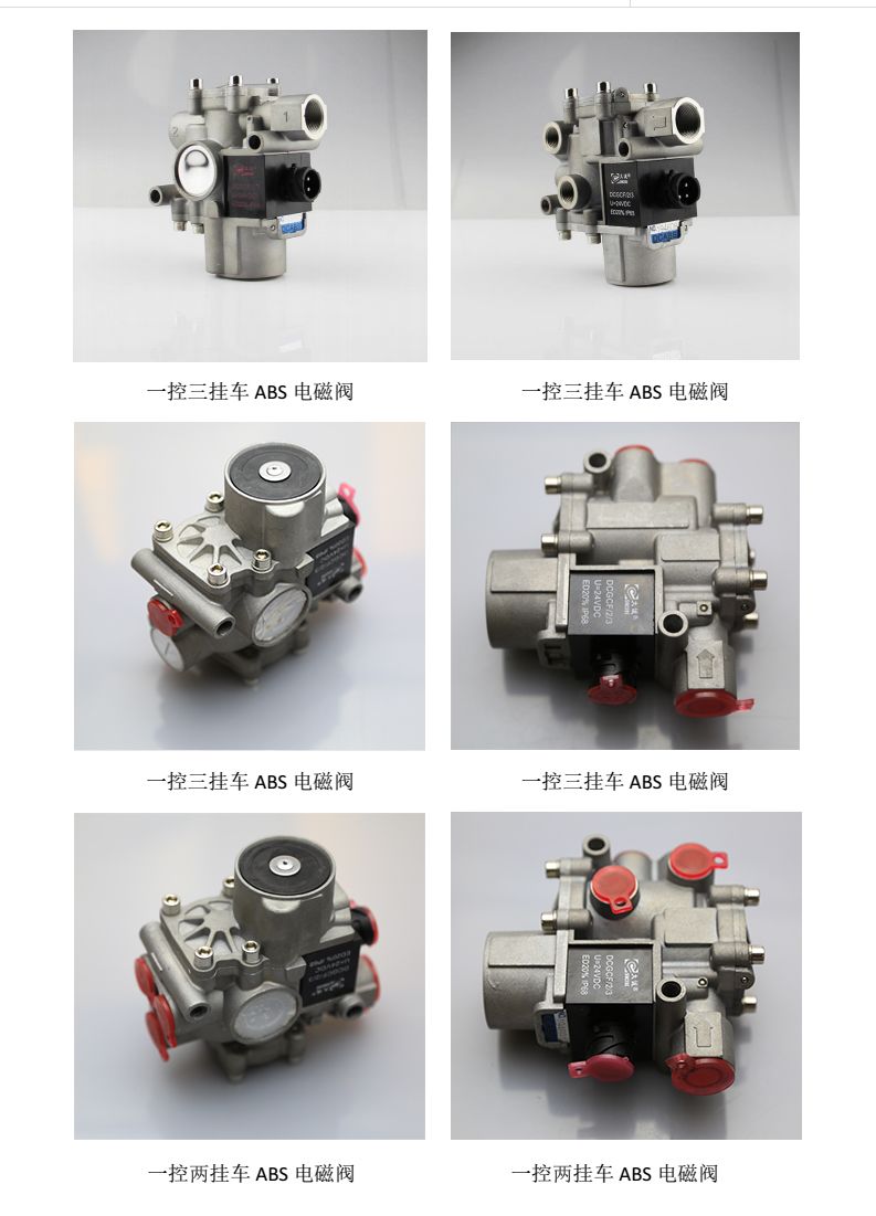 ABS solenoid valve is one of the main executive component of the ABS system, which receives signals from the ECU to the brake chamber for pneumatic, exhaust and holding pressure. Compared with ordinary ABS solenoid valve, Trailer ABS solenoid valve flow more, a solenoid valve can control up to three brake chamber and the gas, so relative to conventional ABS solenoid valve, solenoid valve installed Trailer ABS cost advantage is very obvious.