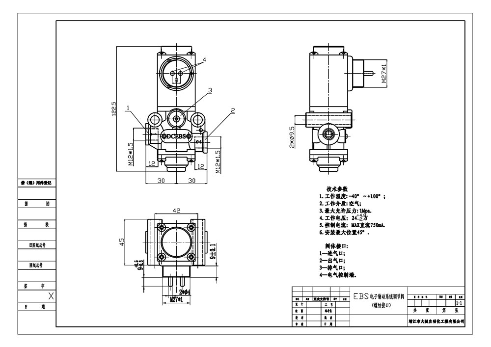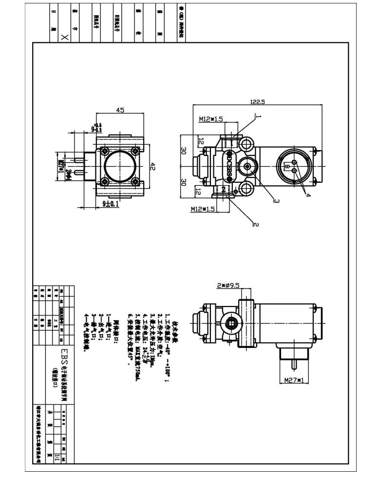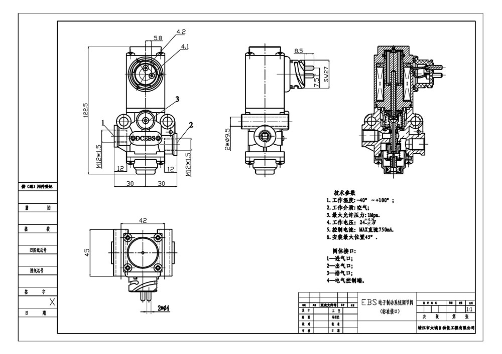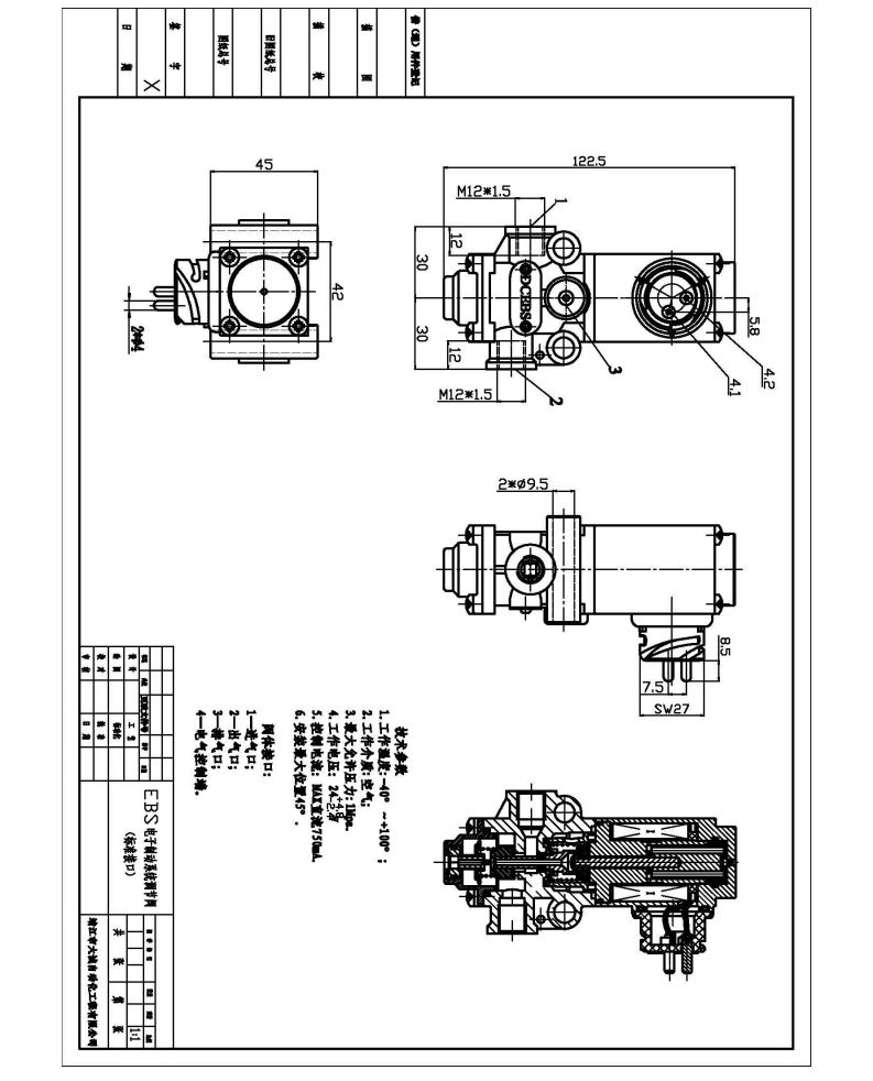 EBS 比例電磁閥是 EBS 系統的一個主要執行部件,它可以根據中央處理模塊給出的電流值的變化來精確的控制氣壓的變化,從而達到精確控制制動力的效果。