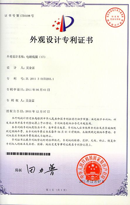 外觀設(shè)計(jì)專利證書