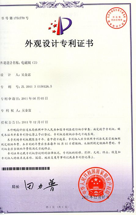 外觀設計專利證書