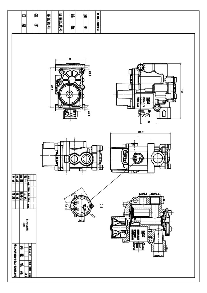 我公司的掛車 ABS 電磁閥上市于 2009 年,經(jīng)過 5 年來的不斷試驗和完善,目前已經(jīng)定型。 為了便于安裝,我們特地開發(fā)了兩個不同方向的電磁閥, 在安裝的時候,可以兩邊的制動氣室分別安裝兩個方向的電磁閥,不用轉(zhuǎn)接彎頭,非常方便。