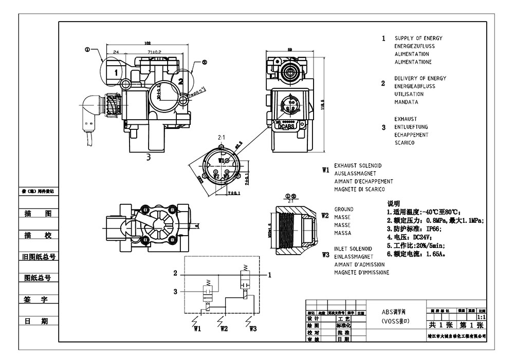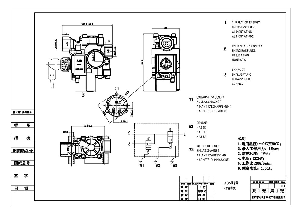 ABS電磁閥是ABS系統的一個主要執行部件,它接收來自 ECU的電信號對制動室進行充氣、排氣和保壓。