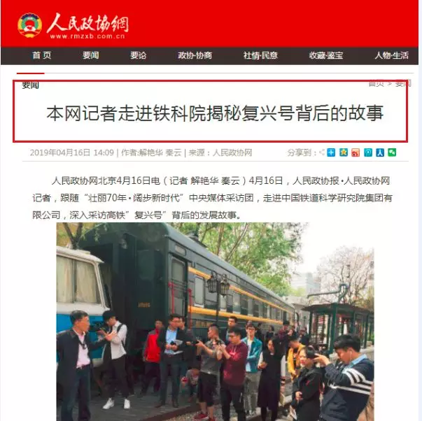 4月16日起,由中宣部組織的慶祝新中國成立70周年“壯麗70年·奮斗新時代”中央媒體采訪團走進中國鐵道科學研究院集團有限公司,聚焦“復興號的搖籃”——機車車輛研究所,開展蹲點式調研采訪。