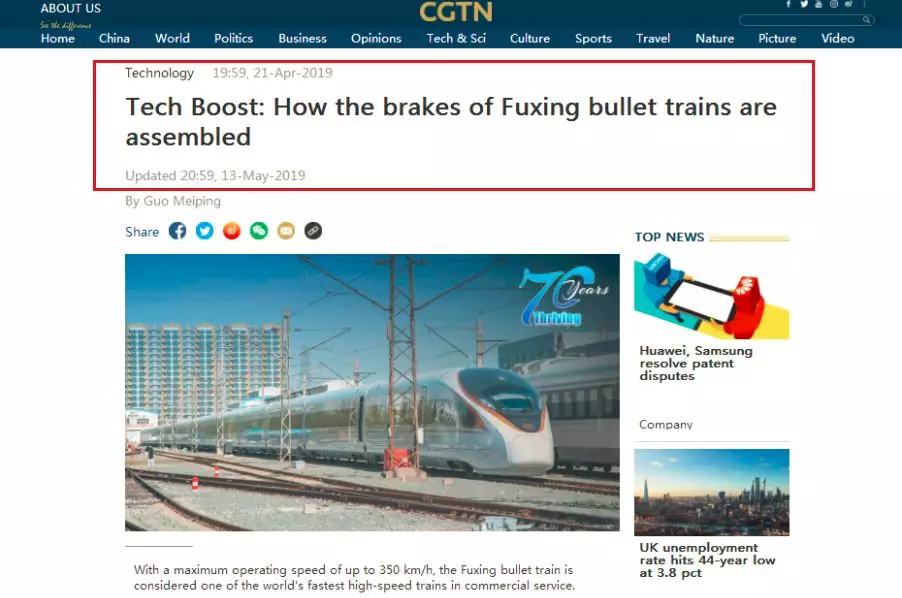 知道復興號的核心部件之一“剎車盤”長什么樣嗎?中新網用50秒視頻滿足你的好奇心!